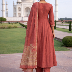 Rust Orange Embroidered Kurta Pant Set with Floral Dupatta