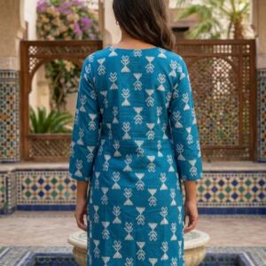 Teal Blue Ikat Printed Straight Kurta