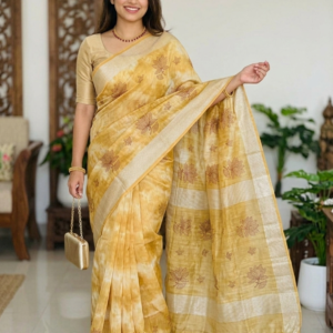 Vibrant Green Linen Festive Silk Saree with Zari Vairawoosi Artistry