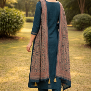 Royal Teal Embroidery Chudidhar Set with Dupatta