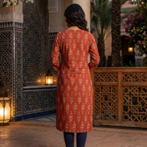 Rust Orange Embroidered Kurta Pant Set with Floral Dupatta