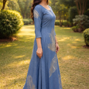 Elegant Blue Feather Print Anarkali Kurti