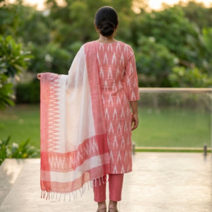 Blush Pink Ikat Printed Chudidhar Set with Dupatta