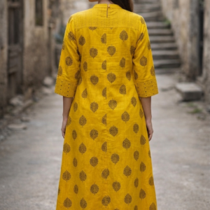 Mustard Yellow Ajrakh Print A-Line Kurta